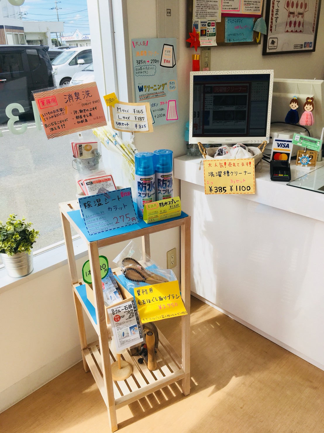 店頭ではご家庭の衣類ケアに役立つ業務用商品を販売中です。