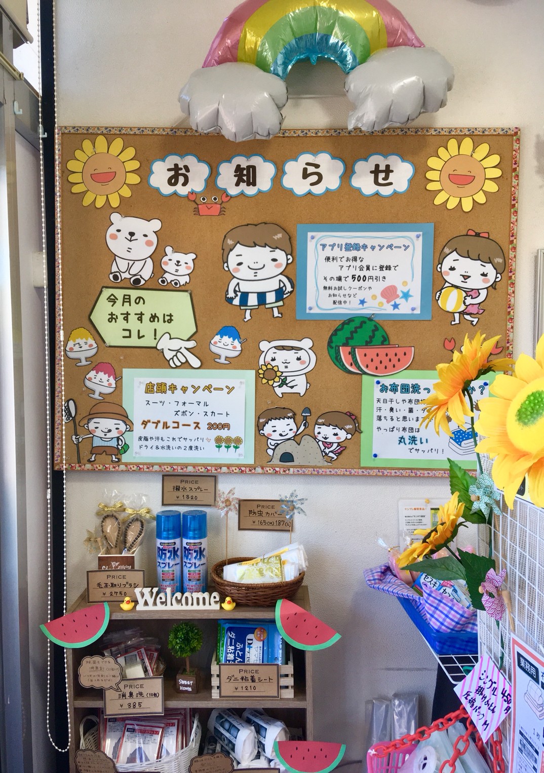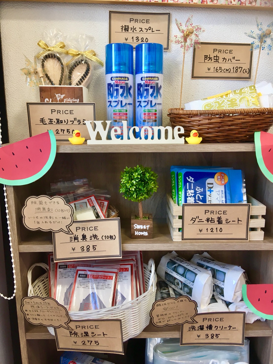 夏洗いディスプレイ タニカワクリーニングカスミ松岸店