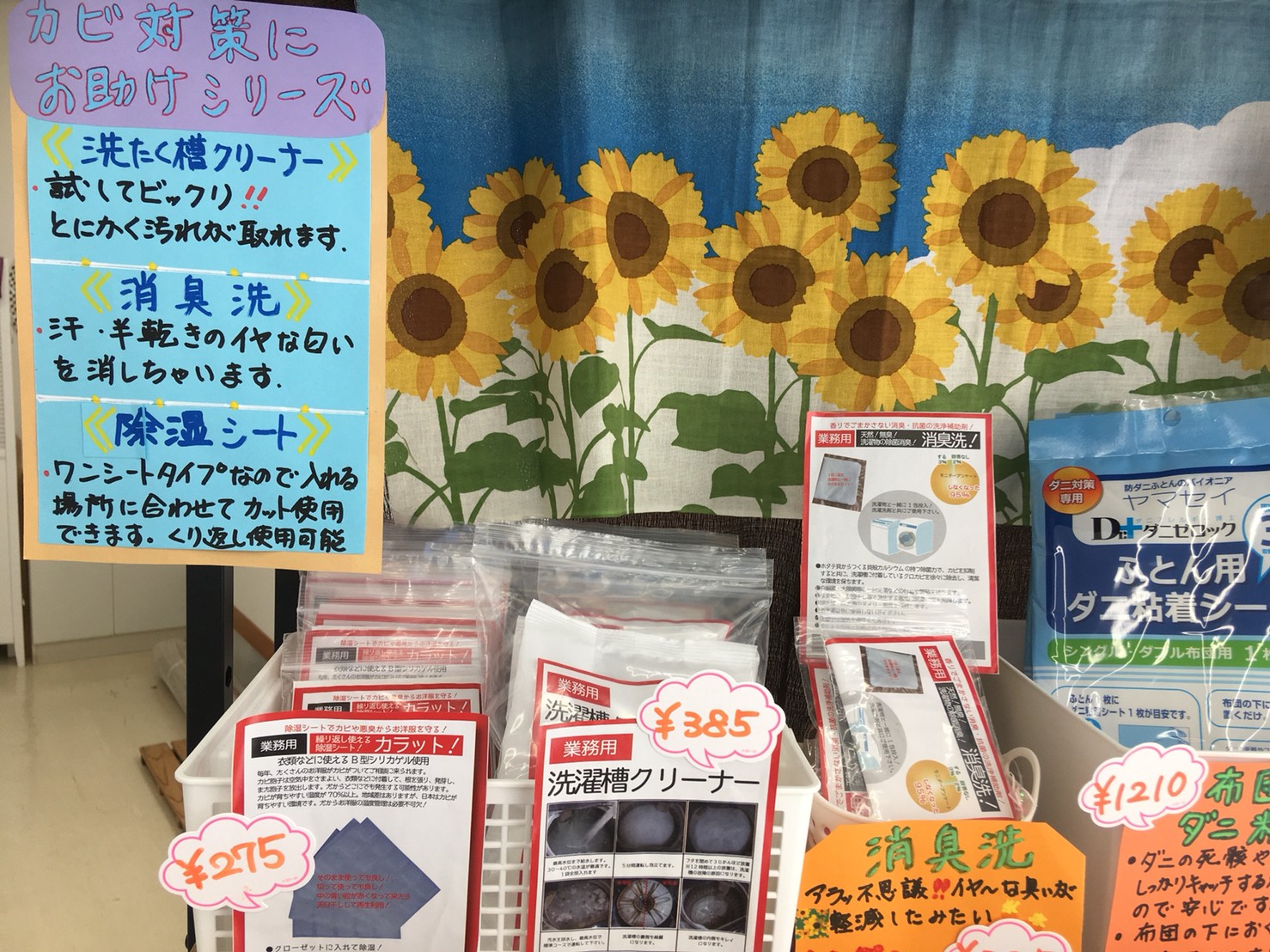店頭ではご家庭の衣類ケアに役立つ業務用商品を販売中です。