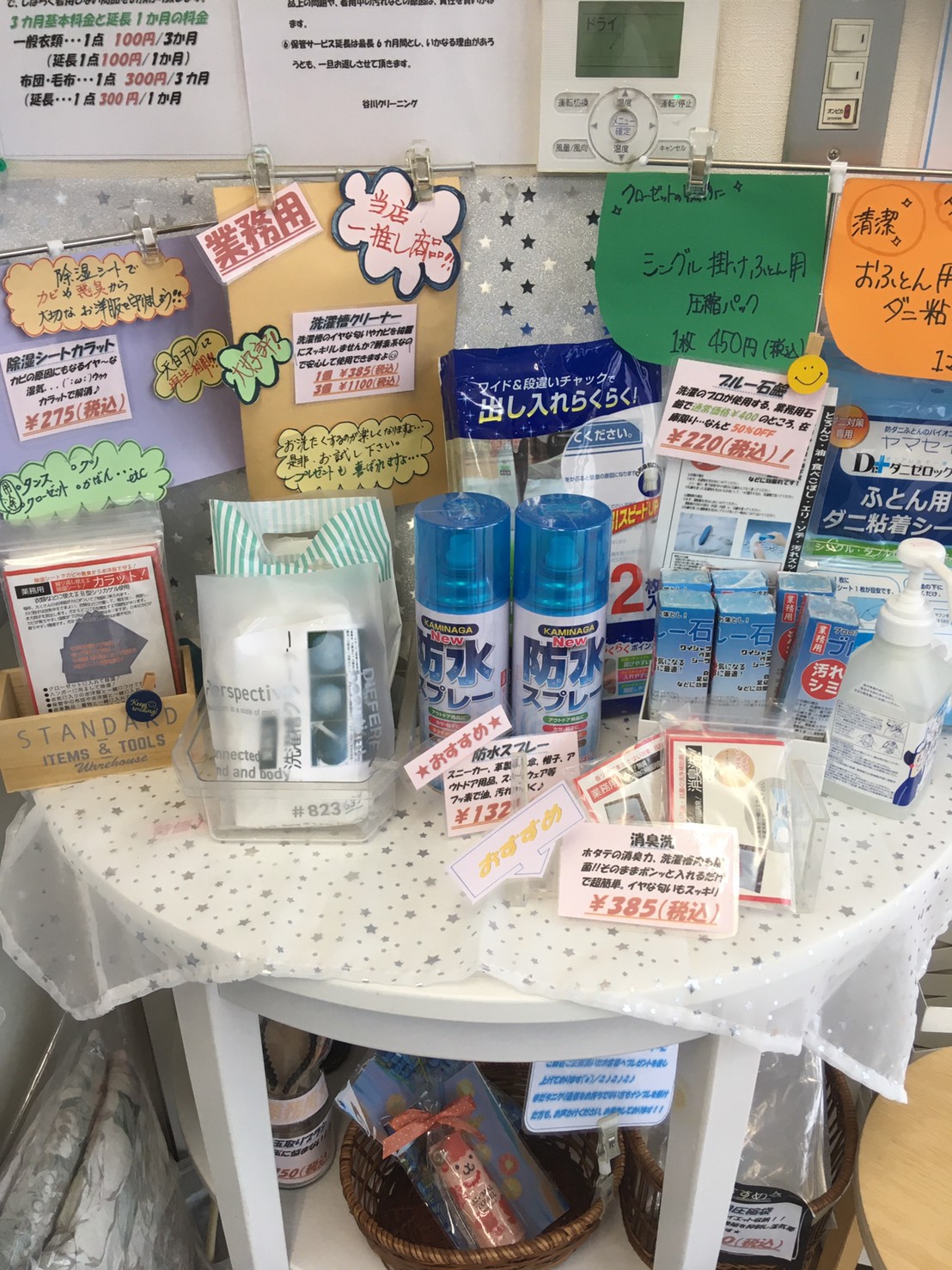 この時期にお勧めするクリーニング品や加工品などです。いろいろな商品がクリーニングできます。