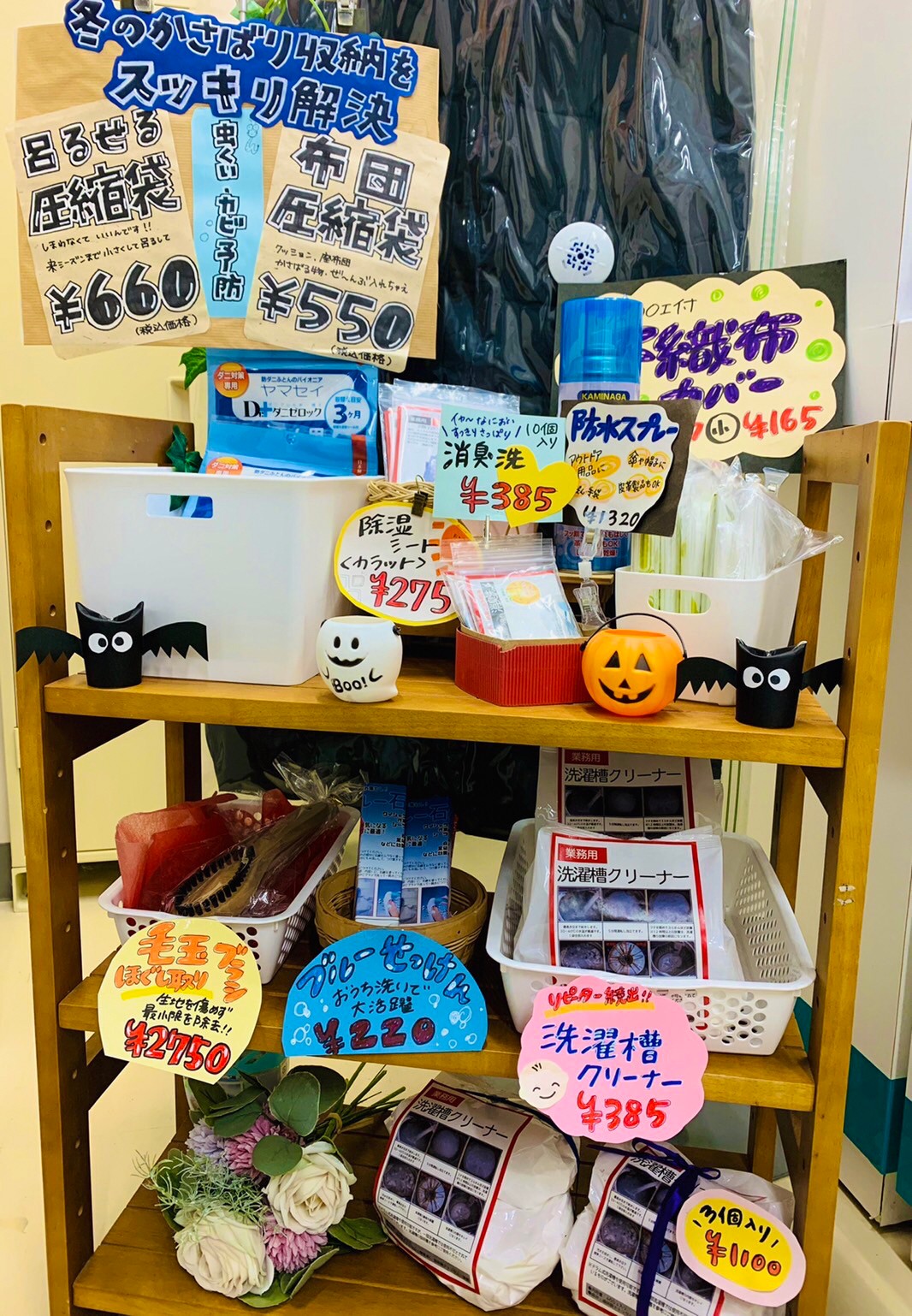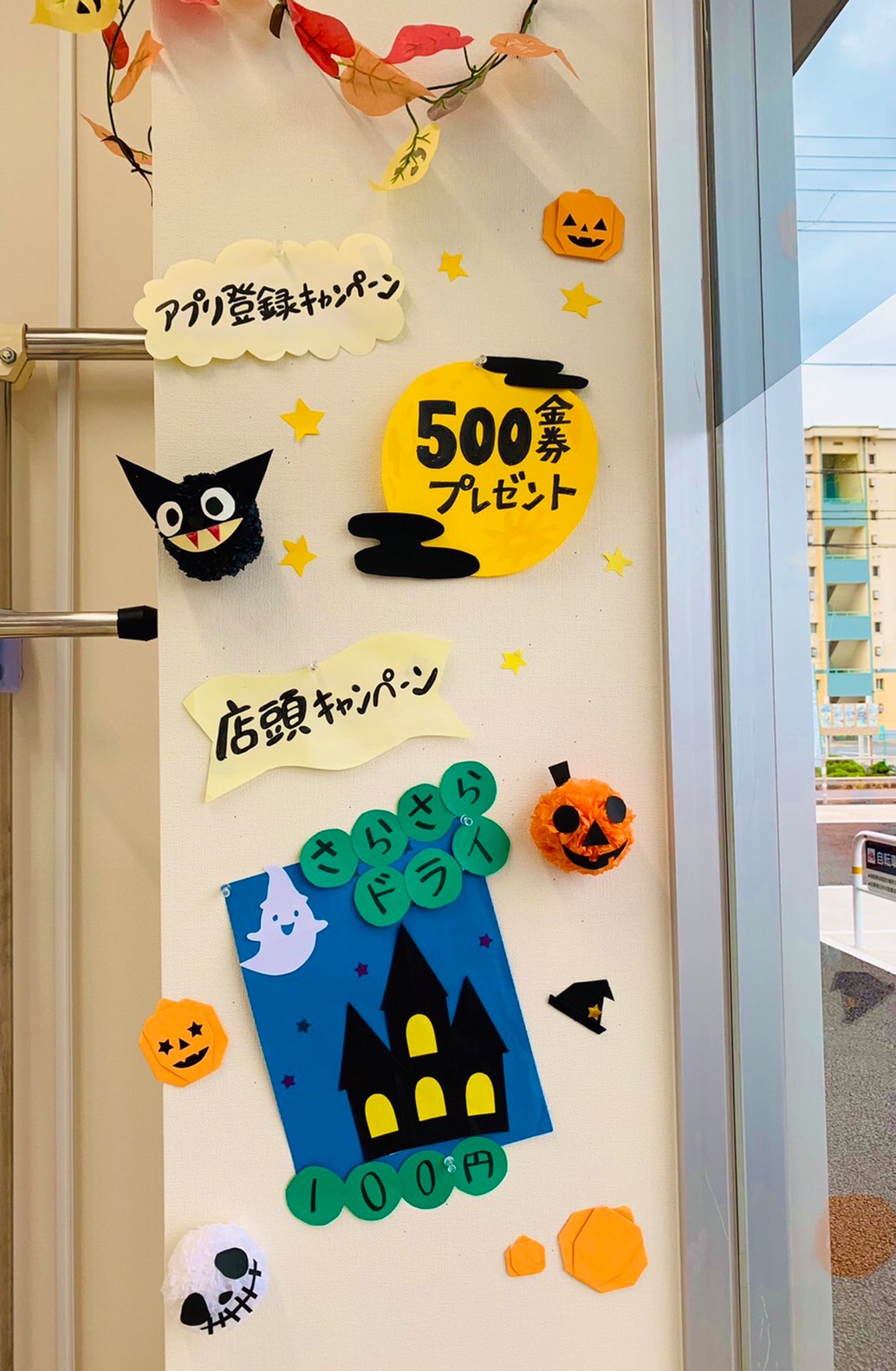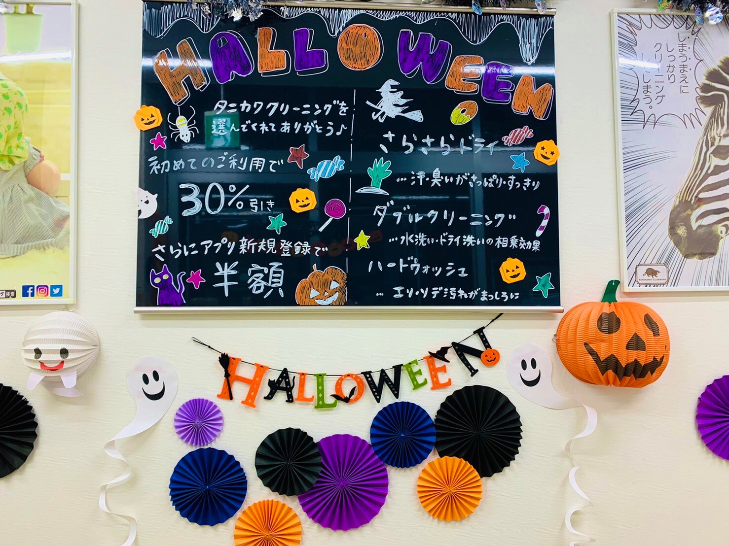 茨城県神栖市・鹿島市、千葉県香取市・銚子市・旭市・山武郡横芝にあるスーパーに併設しているタニカワクリーニング各店では、毎年ハロウィンの時期に合わせて店内をハロウィン仕様に模様替えしております。