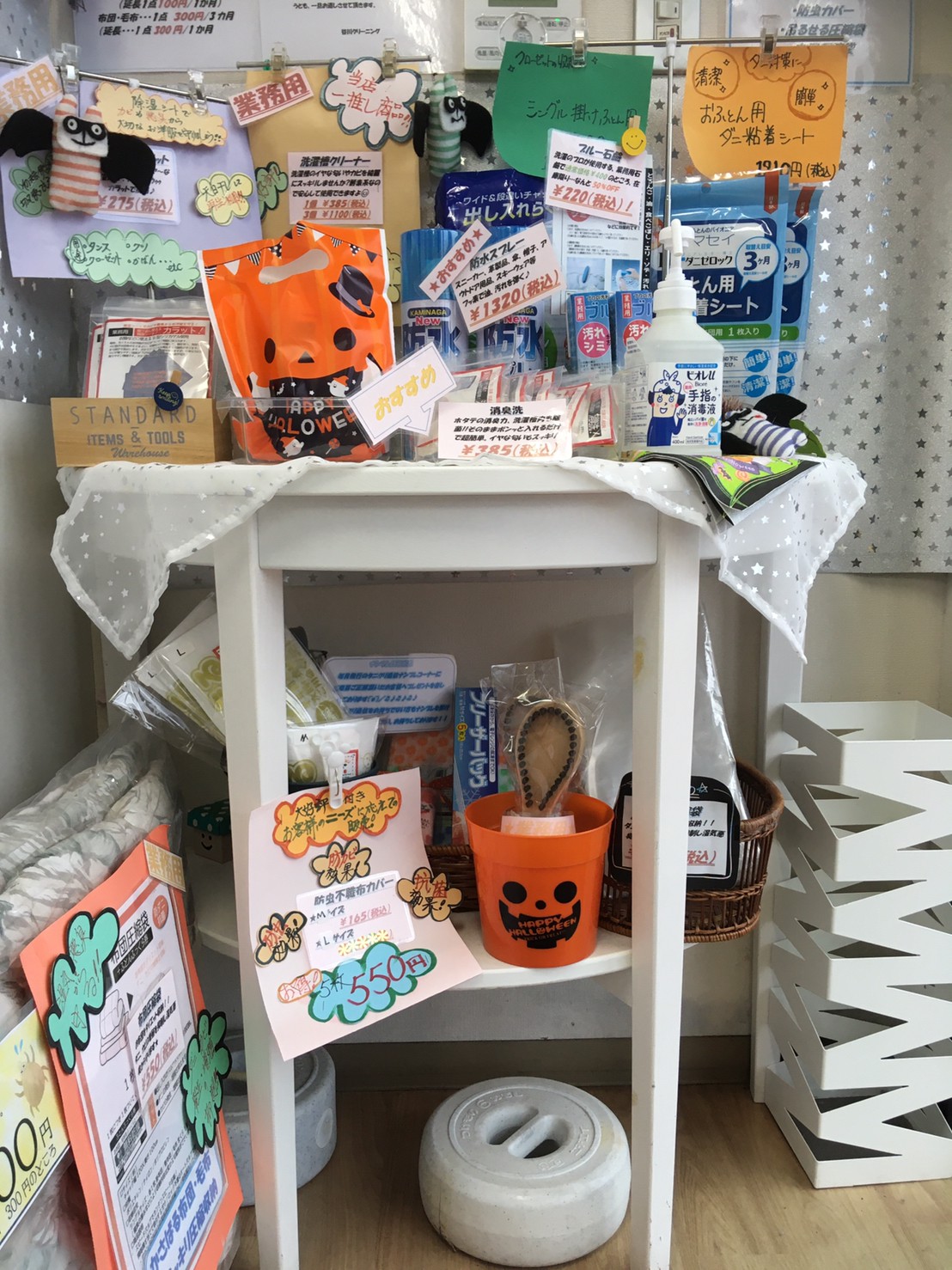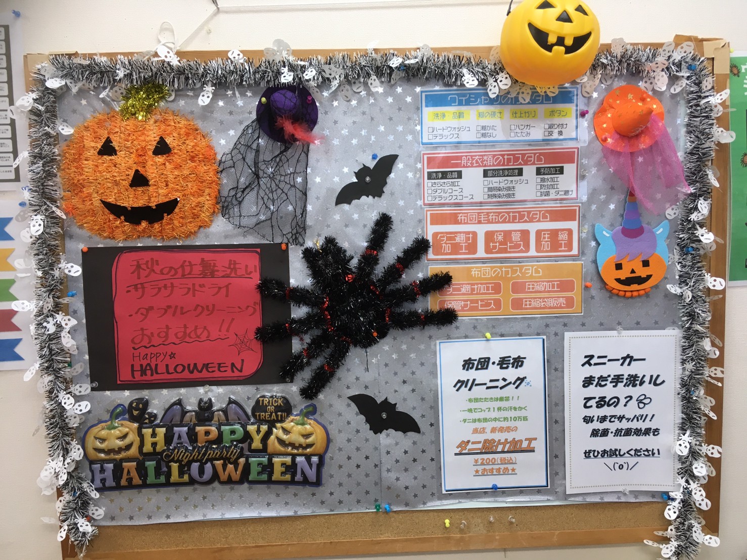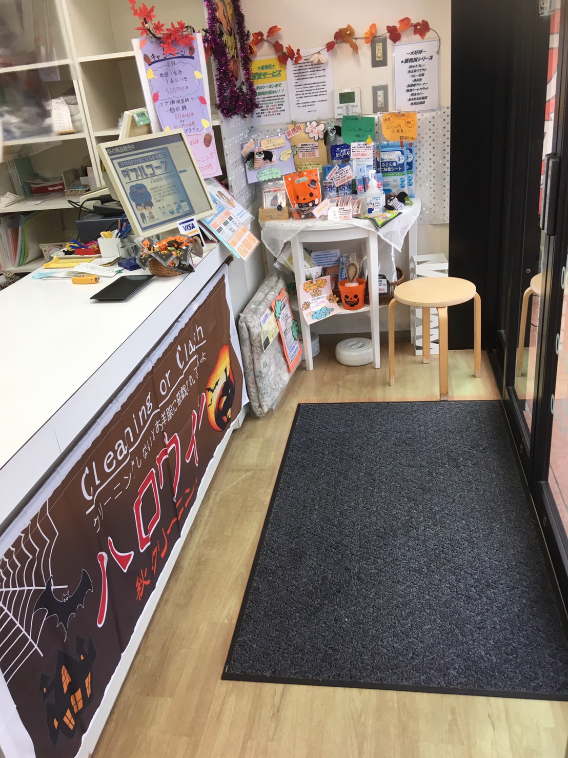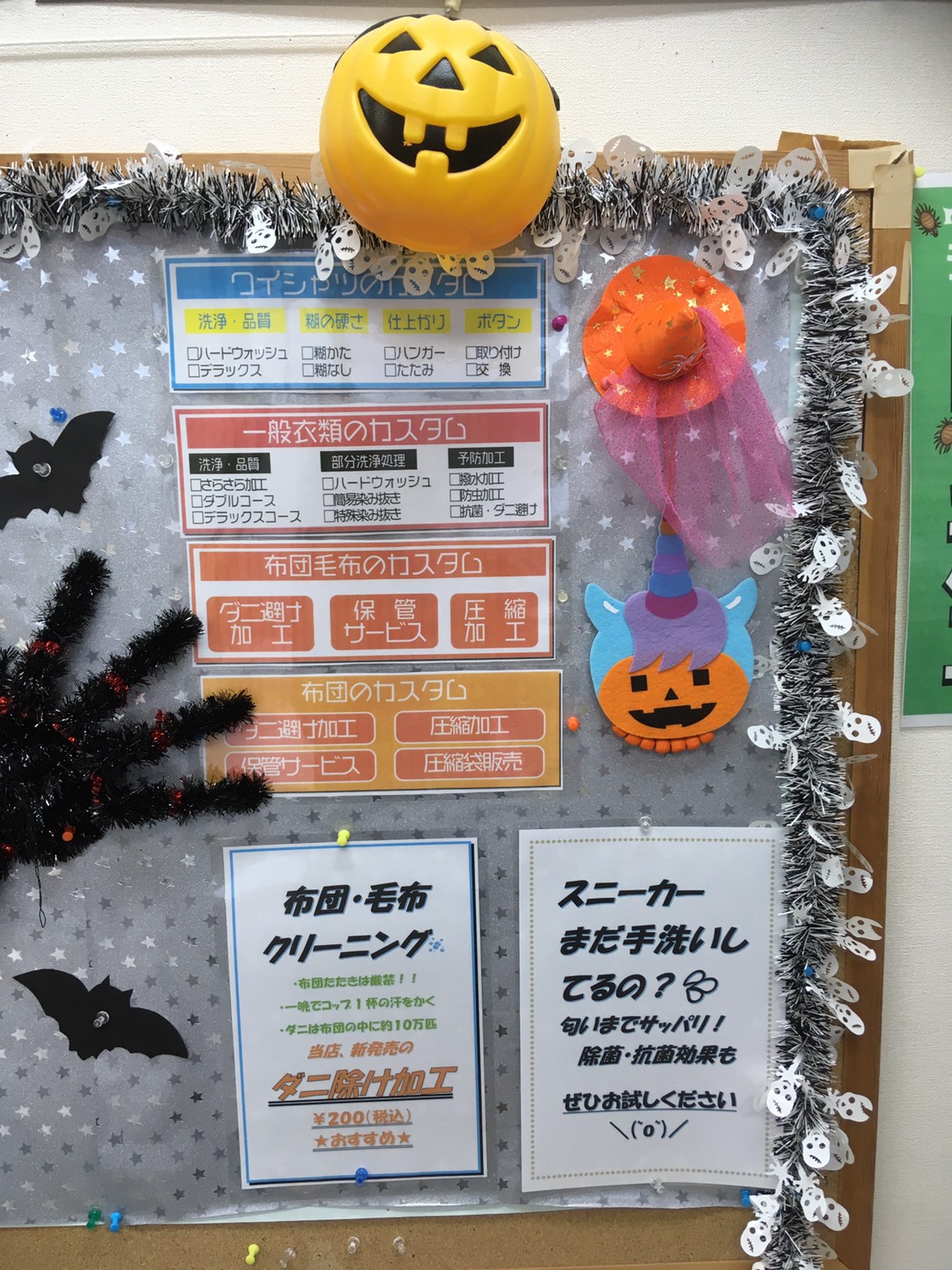 茨城県神栖市・鹿島市、千葉県香取市・銚子市・旭市・山武郡横芝にあるスーパーに併設しているタニカワクリーニング各店では、毎年ハロウィンの時期に合わせて店内をハロウィン仕様に模様替えしております。
