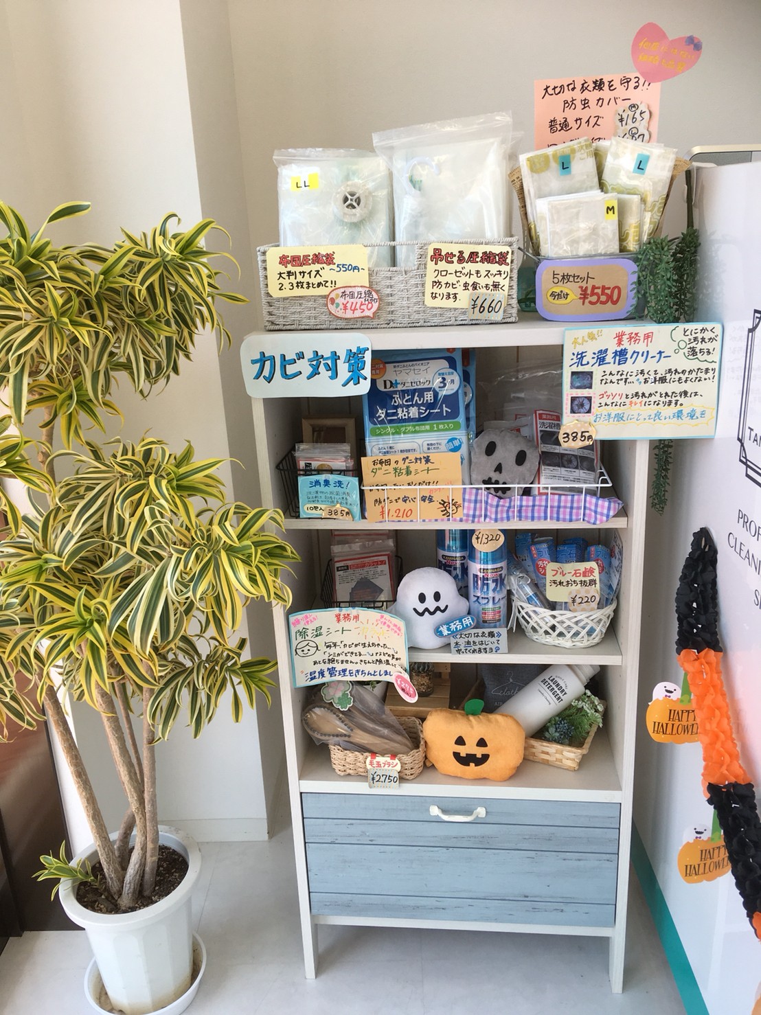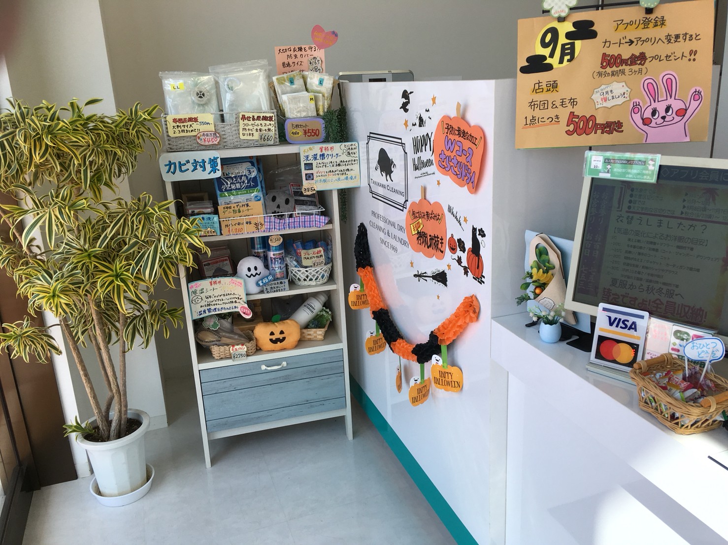 茨城県神栖市・鹿島市、千葉県香取市・銚子市・旭市・山武郡横芝にあるスーパーに併設しているタニカワクリーニング各店では、毎年ハロウィンの時期に合わせて店内をハロウィン仕様に模様替えしております。